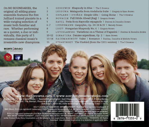 对于来自犹他州的年轻跨界组合布朗五兄妹(The 5 Browns)由而言,此时推出精选专辑或许稍显仓促,这或许正是专辑副标题选用更宽泛的“最爱”一词的原因。尽管如此,这张集合了他们已发行三张专辑中经典曲目的作品,却为这支极为特别的钢琴五重奏——由五架钢琴与五位年轻钢琴家组成的团体,提供了绝佳的入门指引。你尽可以拿他们和奥斯蒙德家族比较,但无可否认的是,出生于1979年至1986年间的 ...